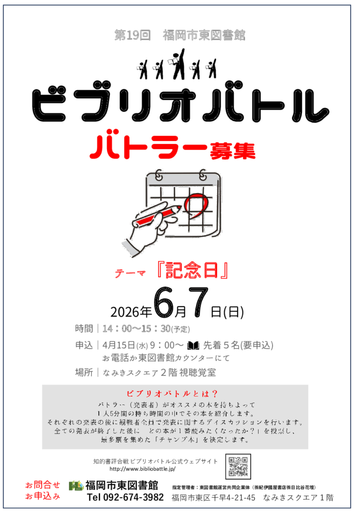 バトラー受付開始:4月15日(水)9:00~ 東図書館カウンター または お電話にて