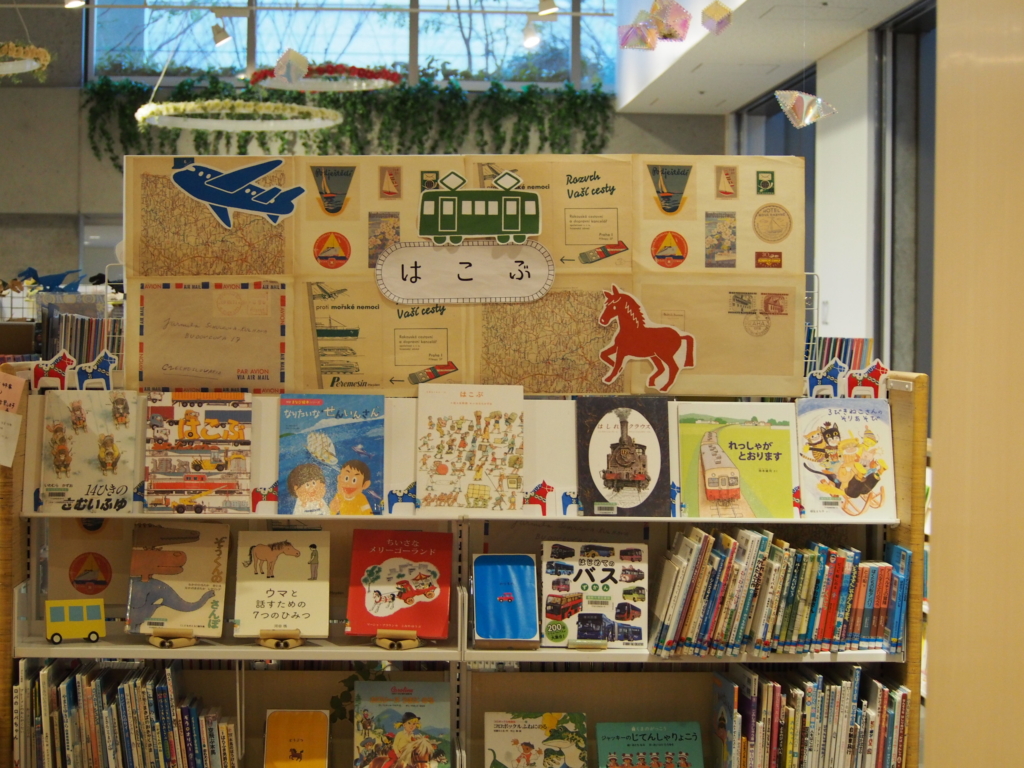 のりものや動物など、人やものをはこぶ本を集めて展示しました。