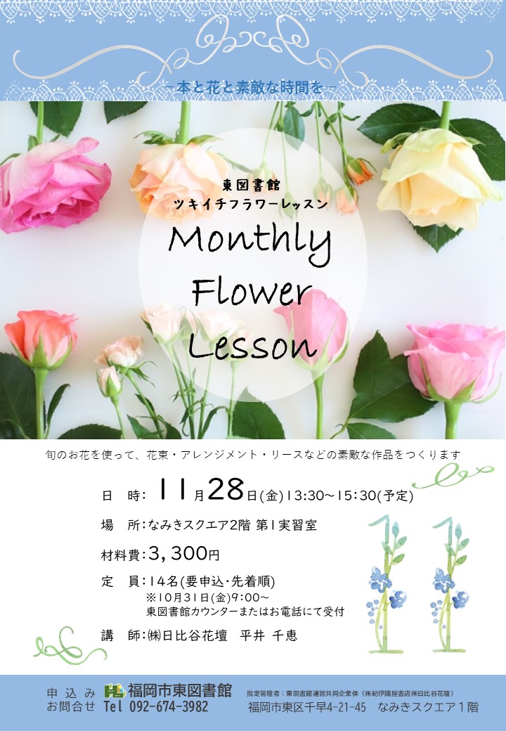 お知らせ 2025年10月08日図書館だより《みなすくレター9・10月号》 2025年10月01日起業経営相談会10月~12月のおしらせ 2025年10月01日おはなし会 10月のおしらせ 開館カレンダー 2025年 10月日月火水木金土282930123456789101112131415161718192021222324252627282930311 開館休館日開館時間 9:00〜20:00 花と緑あふれる空間で、ゆったり読書を愉しんでみませんか。 わたしたちのめざすもの、それは人と本の出会いの架け橋となること。なにか みつかる きっかけの森 東図書館でいろんな自分に出会ってみませんか。 お知らせ イベント 館内案内 貸出・返却 各種サービス 交通アクセス PICKUP! ツキイチフラワーレッスン ツキイフラワーレッスン 11月 2025年11月28日(金) 申込開始:2025年10月31日(金) … 東区歴史探訪 秋の名島城址と周辺史跡 2025年11月12日(水) 申込開始:2025年10月16日(木)9… 甘酒講座 2025年11月19日(水) 申込開始:10月20日(月)9:00~東… 中国茶の文化と歴史 2025年11月13日(木) 申込開始:10月17日(金)9:00~東… 語り ようこそ昔話の世界へ おはなしあれこれ 2025年11月24日(月・祝) 申込開始:10月15日(水)9:00~東… ハングル講座 中級向けハングル講座 韓国語で詩を読む 2025年11月2日(日) 申込開始:10月1日(水)9:00~東図… 季節の工作ひろば 【終了しました】こども向け 季節の工作ひろば 2025年10月25日(土) 申込開始:2025年10月3日(金)9:… 健康講座 生き活き講座 食べて元気にフレイル予防~栄養&ストレッチ~ 2025年10月31日(金) 受付開始 10月6日(月)9:00~ 福… 五感に触れる植物ワークショップ アロマオイルのある暮らし 2025年10月29日(水) 申込開始:2025年9月25日(木)9:… 第18回 ビブリオバトル 開催 2025年10月26日(日) バトラー受付開始:9月1日(月) 9:0…